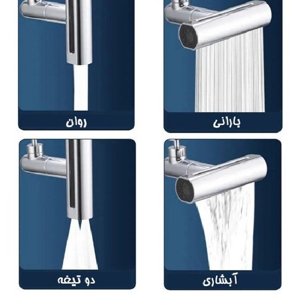 دارای سری با قابلیت چرخش 360 درجه مجهز به چهار خروجی آب با پاشش متفاوت شامل بارانی ، آبشاری ، دو تیغه و روان انتخاب نوع پاشش تنها با چرخاندن سری نصب آسان مناسب برای شست و شو و آبکشی سریع و آسان قابل استفاده برای شیر آب سینک آشپزخانه و …