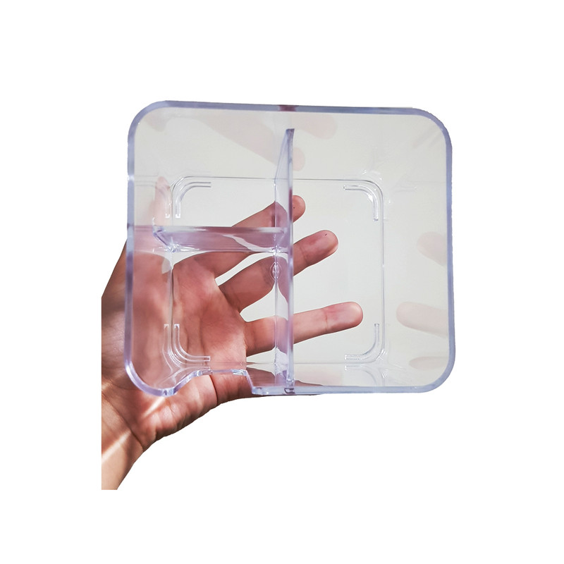 اين استند داراي سه قسمت مي باشد که به شما اين امکان را ميدهد تا لوازم آرايشي خود را مرتب کرده و در حمام يا ميز آرايشي استفاده کنيد. داراي يک محفظه براي نگه داري پنبه هاي ديسکي مي باشد که شما به راحتي با باز کردن بسته آنها ميتوانيد درون اين باکس قرار دهيد. داراي يک محفظه براي نگه داري گوش پاک کن ، که ميتوانيد با برداشتن در آن به راحتي به آنها دسترسي پيدا کنيد و محفظه سوم براي شما مي تواند پد هاي رژگونه و يا ساير وسايل کوچک روي ميز شما را در خود نگه داري کند.