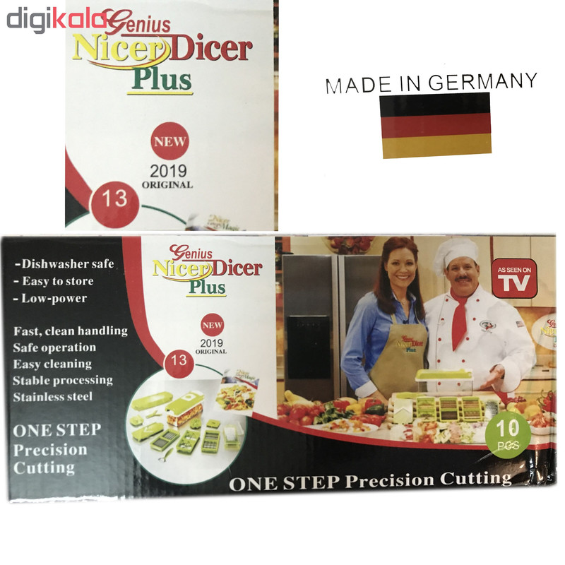 مسلما آشپزهای حرفهای،سالهای زیادی تمرین کردهاند تا یاد گرفتهاند چگونه بدون صدمه زدن به دستانشان با سرعت خیلی زیاد، میوه و سبزیجات را به قطعات کاملاً هماندازه، گاهی خیلی ریز و نازک و گاهی درشت تقسیم کنند. نایسر دایسر پلاس اره ای که از تیغه های اره ای و جنس کاملا اورجینال آلمانی ساخته شده است و روی تیغه ها کشور سازنده درج شده است وسیلهای چندکاره است. این وسیله این امکان را فراهم میکند تا شما بتوانید پیاز، گوجهفرنگی، خیار و سایر موادغذایی را در زمانی کوتاه و بهراحتی، در اندازههای دلخواهتان خرد کنید. همچنین با استفاده از تیغههای تیز این غذاساز میتوانید در هر ثانیه، چندین برش با شکلهای متفاوت انجام دهید. این غذاساز دارای یک رندهی تیز دارای روکش و یک پوستکن با دستهی ارگونومیک است که شرایط پوست کندن را آسانتر میکند. به محتویات این غذاساز میتوان ظرف دردار آن را اضافه کرد که از جنس پلی کربنیک است.این غذاساز یک بستهی کامل شامل خردکن، لهکن، پوستکن و رنده به همراه یک ظرف دردار ذخیرهسازی است که تمام کارهای یک سرآشپز را برای آمادهسازی موادغذایی قبل از طبخ غذا، در کمترین زمان ممکن و امنترین روش انجام میدهد.این محصول یک عدد سیر خرد کن دوکاره باتیغه قابل تعویض و دارای رنده را نیز به همراه دارد.