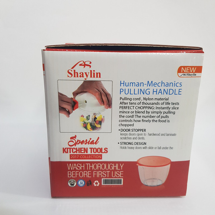 همیشه برای خردکردن سبزیجات، هویج، پیاز، میوهها و دیگر مواد غذایی، داشتن یک وسیله که بتواند عمل خردکردن آسان را انجام دهد، به شما کمک میکند غذای خود را سریعتر و با کیفیت بیشتری طبخ کنید. یکی از این دستگاهها، خردکن و همزن دستی است که یک نمونهی جالب آن را با برند «shaylin» در تصویر میبینید. این دستگاه دارای یک تیغهی چهارپر و بسیار تیز در دو ردیف است که روی محور خود به چرخش درمیآید. علاوهبر تیغه، یک همزن با پایه نیز در بستهبندی محصول وجود دارد که میتوانید از آن برای همزدن تخممرغ یا مایع کیک و... استفاده کنید. چیزی که این دستگاه را از دیگر محصولات متمایز میکند، مکانیزم چرخش آن است. به این صورت که روی درِ خردکن یک دستهی پلاستیکی وجود دارد که به یک ریسمان بسیار محکم متصل است. با کشیدن این دسته میبینید که تیغه یا همزن به چرخش درمیآید و بسته به سرعت کشیدن ریسمان، سرعت چرخش کم و زیاد میشود. ریسمان آن تا 40 سانتیمتر به بیرون میآید. امکان پارهشدن آن بههیچوجه وجود ندارد و حتی اگر روی بدنه ساییده شود، باعث خوردهشدن بدنهی پلاستیکی آن میشود. تیغههای این محصول بسیار تیز هستند و حتی با پرکردن کاسه از سبزیجات و... کند نمیشوند یا گیر نمیکنند. از طرف دیگر سیستم چرخشی آن که حالت کشیدن نخ با دسته را دارد، باعث خردشدن یا همخوردن سریعتر شده و دست کمتر خسته میشود. زیر کاسهی این محصول، یک نوار لاستیکی قرار گرفته است که باعث چسبندگی آن به زمین و سرنخوردن آن میشود؛ بنابراین میتوانید با یک دست بهآرامی خردکن را نگه داشته و با دست دیگر نخ را بکشید؛ بدون آنکه کاسه تکان بخورد. نکتهی بسیار مهم دیگر این است که لبههای تیغهها رو به بالا هستند و باعث میشوند مواد درون خردکن به بالا پرتاب شده و تیغههای ردیف بالایی بدون استفاده نباشند. میتوان به جرئت گفت که تیغههای این محصول اصلا کند نمیشوند و میتوانند چند سال با کیفیت اولیه کار کنند. جنس بدنهی این محصول از پلاستیک و ابعاد آن 12x11 سانتیمتر است. این خردکن وسیلهای بسیار کاربردی و مهم در آشپزخانهی شماست.