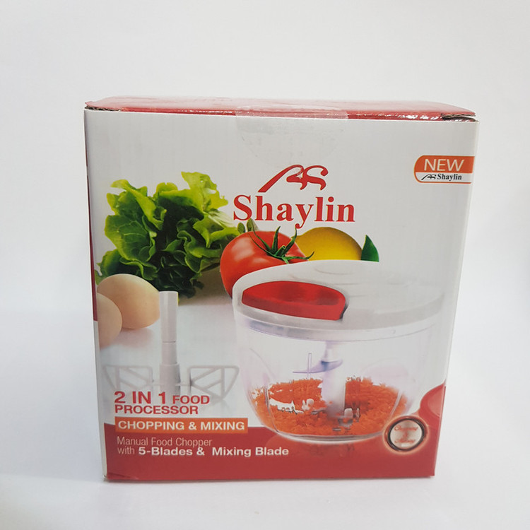 این کالا با تیغه های اصلی را حتما طبق تصاویر با برند شایلین تحویل بگیرد چرا که تیغه های این محصول استیل ضد زنگ و برش لیزر خوره و تیز میباشد. - دارای 2 تیغه و محفظه قرارگیری - دارای 2 عملکرد متنوع - خردکن و همزن - دارای 5 تیغه فلزی