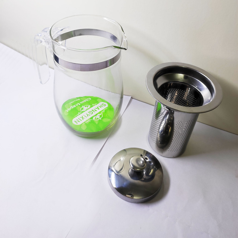 قوری دمنوش ساز SHANGYIXIN مناسب برای درست کردن انواع چای و دمنوش می باشد. بدنه قوری دمنوش از جنس پیرکس بوده و داخل آن یک محفظه فیلتری از جنس استیل ضد زنگ قرار دارد. این قوری مناسب برای درست کردن چای، چای سبز و انواع دمنوش ها می باشد و دارای ظرفیت 900 میلی لیتر است. برای استفاده از این قوری ، تنها کافیست دمنوش و یا چای را یه همراه آب جوش درون محفظه فیلتری بریزید. فیلتر این قوری دارای سه گیره است که باعث می شود با خم کردن قوری فیلتر از آن خارج نشود و شما با خیال راحت تا آخرین قطره دمنوش خود را استفاده نمایید.