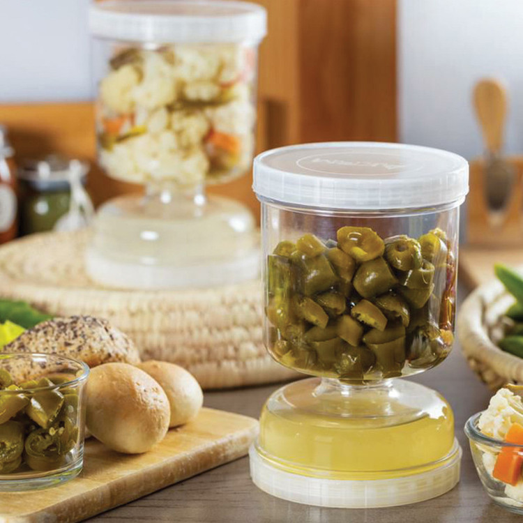 این ظرف نگهداری بصورت آبگیر دار جهت استفاده اسان از مواد غذایی نظیر انواع ترشیجات، خیارشور ، زیتون ، پنیر و تمامی مواد غذایی که ملزم به نگهداری در آب و مایعات می باشند