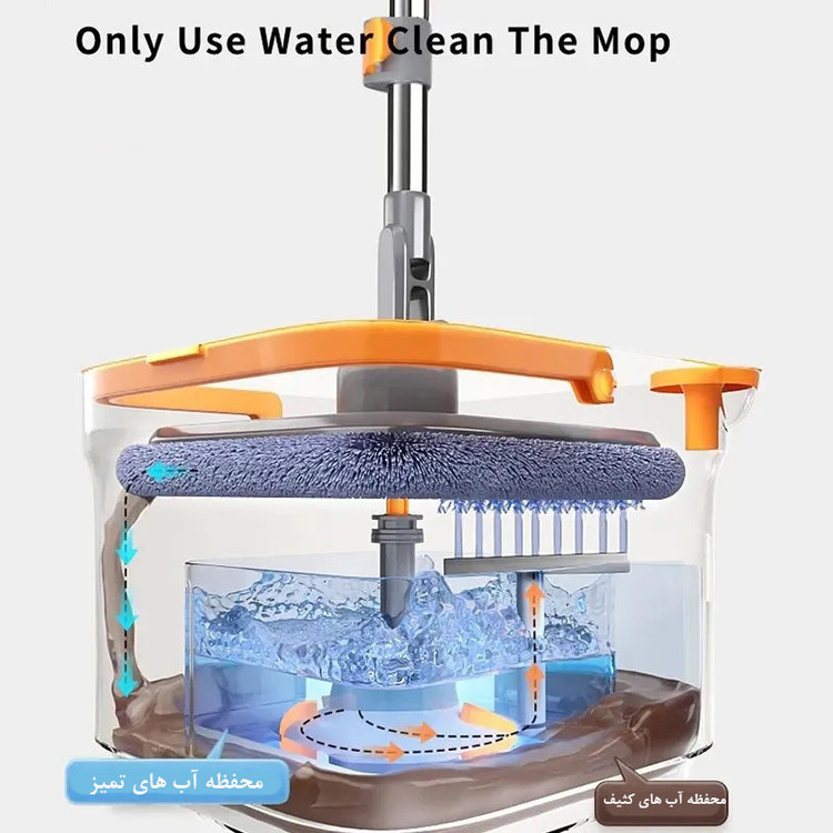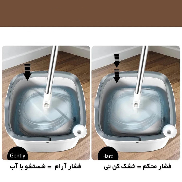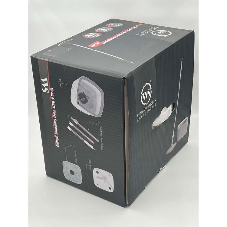 ست سطل زمین شوی دبلیو اس مدل WS200 به همراه 2 پد یدک داخل جعبه با بسته بندی عالی و راهنمای نصب، بسیار مناسب برای شست و شوی کف کاشی، سرامیک، سنگ، پارکت، لمینت و چوب به صورت کاملا چرخشی (دورانی) میباشد. این محصول دارای پد مربعی شکل است و سطل آبگیر آن نیز از مکانیزم فوق العاده ای برخوردار است به این صورت که دیگر نیاز نیست وقتی پد کثیف شد آنرا جدا کرده و زیر شیر آب بشویید فقط کافیست آنرا داخل سطل و در قسمت مشخص شده گذاشته و با دسته ضربه بزنید تا برس داخل سطل آنرا کاملا بشوید نکته ی جالب دیگر این محصول این است که آب کثیف بعد از شست و شو از آب تمیز مخزن جدا میشود و شما کافیست آنرا از شیر تخلیه ی پایین مخزن، خالی کنید.