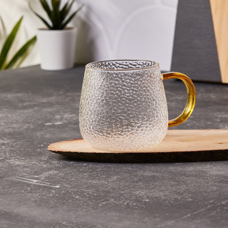 ماگ بشکه ای پیرکس مقاوم به گرما و سرما و بسیار سبک وزن - دسته به رنگ زرد عسلی - قطر دهانه 7/5 سانتی متر - ارتفاع حدود 8/5 سانتی متر - حجم 450 میلی لیتر