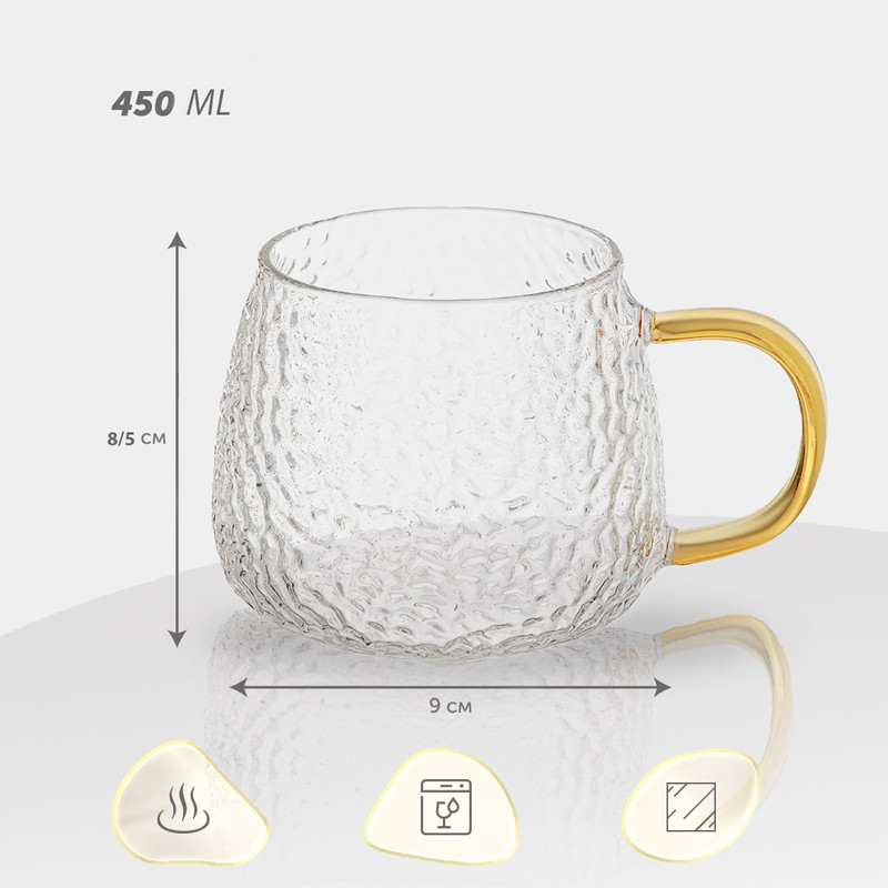ماگ بشکه ای پیرکس مقاوم به گرما و سرما و بسیار سبک وزن - دسته به رنگ زرد عسلی - قطر دهانه 7/5 سانتی متر - ارتفاع حدود 8/5 سانتی متر - حجم 450 میلی لیتر
