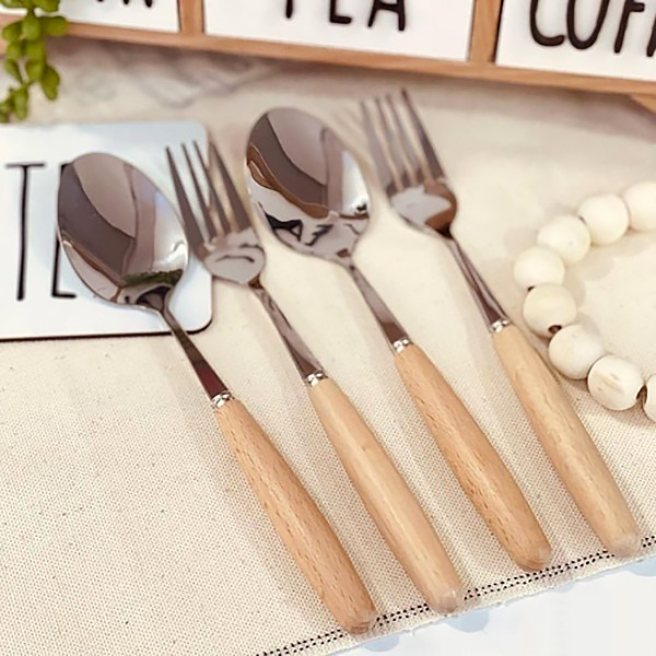 سرویس قاشق و چنگال 12 پارچه مدل دسته چوبی