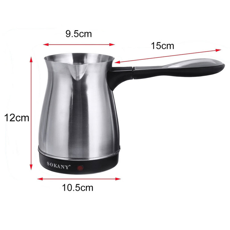 قهوه جوش برقی Sokany مدل SK-124 با بدنه استیل تولید می شود. این قهوه جوش بر روی پایه نگهدارنده دارای یک دکمه برای خاموش و روشن کردن قهوه جوش می باشد. دسته قهوه جوش بلند و کاملا ارگونومیک طراحی شده است. حجم قهوه جوش حدود 0.5 لیتر است و در هر بار استفاده قابلیت تهیه 5 کاپ قهوه را دارد. توان این دستگاه 600 وات واقعی است.همچنین این قهوه جوش قابلیت چرخش 360 درجه میباشد و دارای دسته با جنس پلاستیک فشرده و غیرقابل ذوب میباشد.