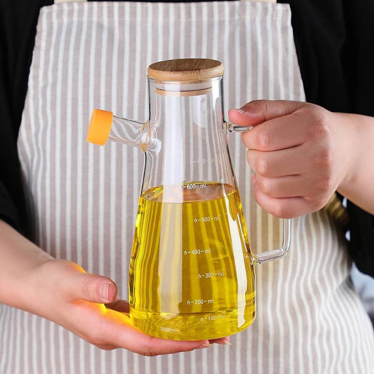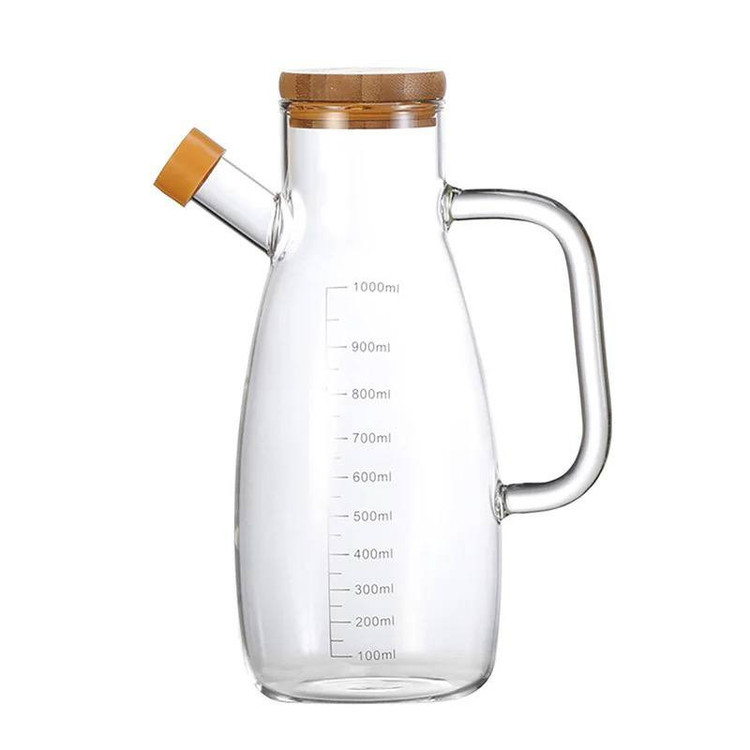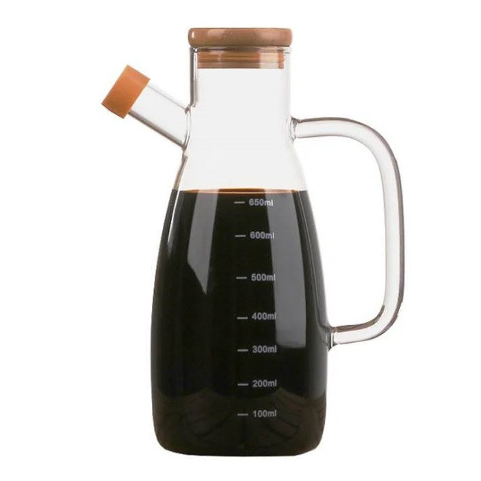 این روغن ریز از جنس پیرکس دارای درپوش از جنس پلاستیک و درب آن از جنس بامبو می باشد.بسیار مقاوم در برابر شعله مستقیم می باشد و مناسب برای استفاده به عنوان روغن ریز ،آبلیمو و سرکه و... است.حجم آن 1000میلی لیتر می باشد.