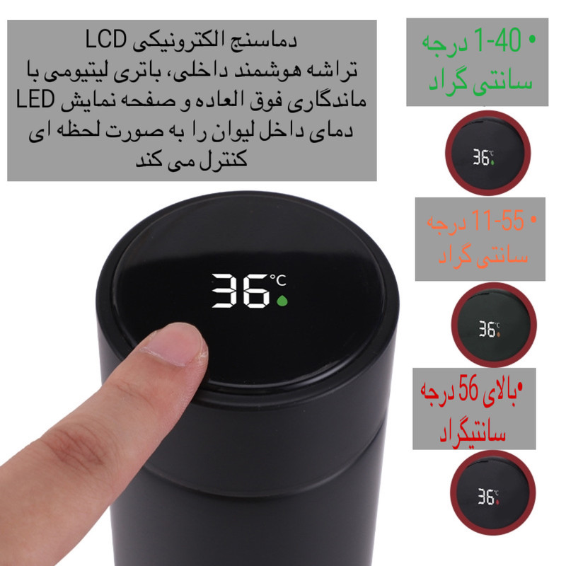 دارای نمایشگر LED جهت نمایش میزان دمای نوشیدنی- دارای صافی استیل- دارای حلقه آب بندی-