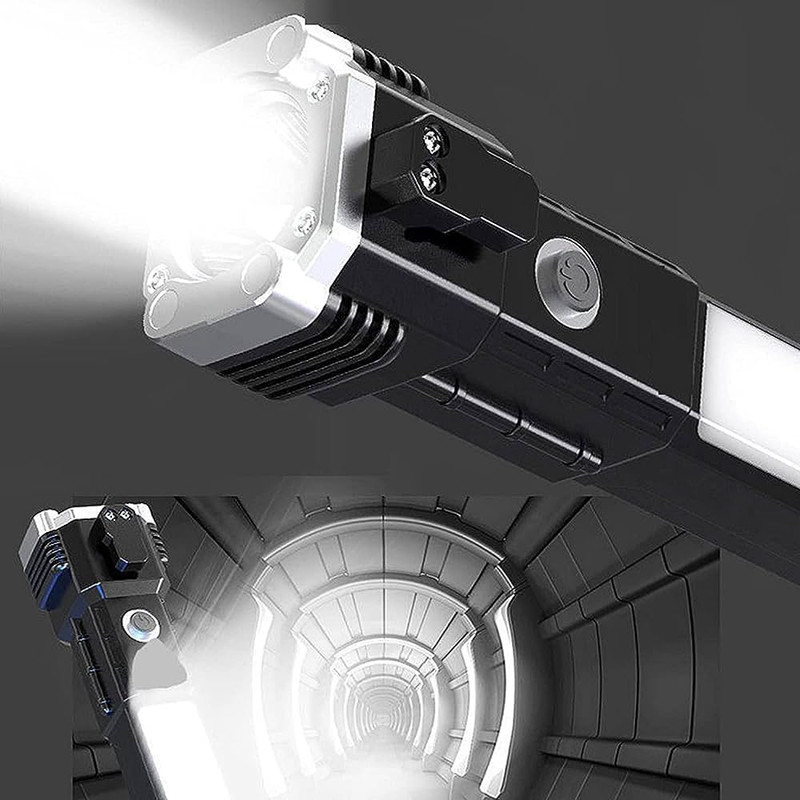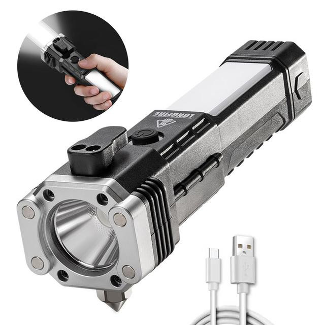 چراغ قوه ال ای دی قابل حمل و قابل شارژ با برد بالا یک ابزار کاربردی برای کمپ و دیگر کاربردها می باشد. این چراغ قوه قابلیت استفاده به عنوان پاوربانک ضروری را نیز داراست. یک نوار ال ای دی نیز علاوه بر ال ای دی اصلی تعبیه شده که نور ملایم و یکنواختی را برای داخل چادر یا کمپ ایجاد می کند. یک تیغه جذاب جهت موارد اضطراری تعبیه شده که به وسیله آن می توان کمربند خودرو و یا طناب و بند را پاره کرد. علاوه بر این یک تیغه فلزی نوک تیز جهت شکستن شیشه در موارد ضروری نیز تعبیه شده است.